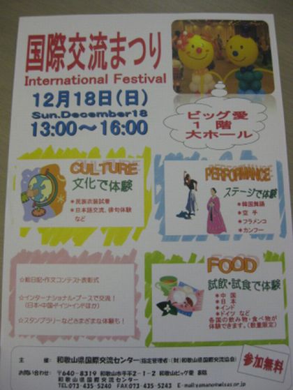 年末の寒い季節になりますが、12月18日(日)は毎年恒例の「国際交流まつり」を開催いたします!